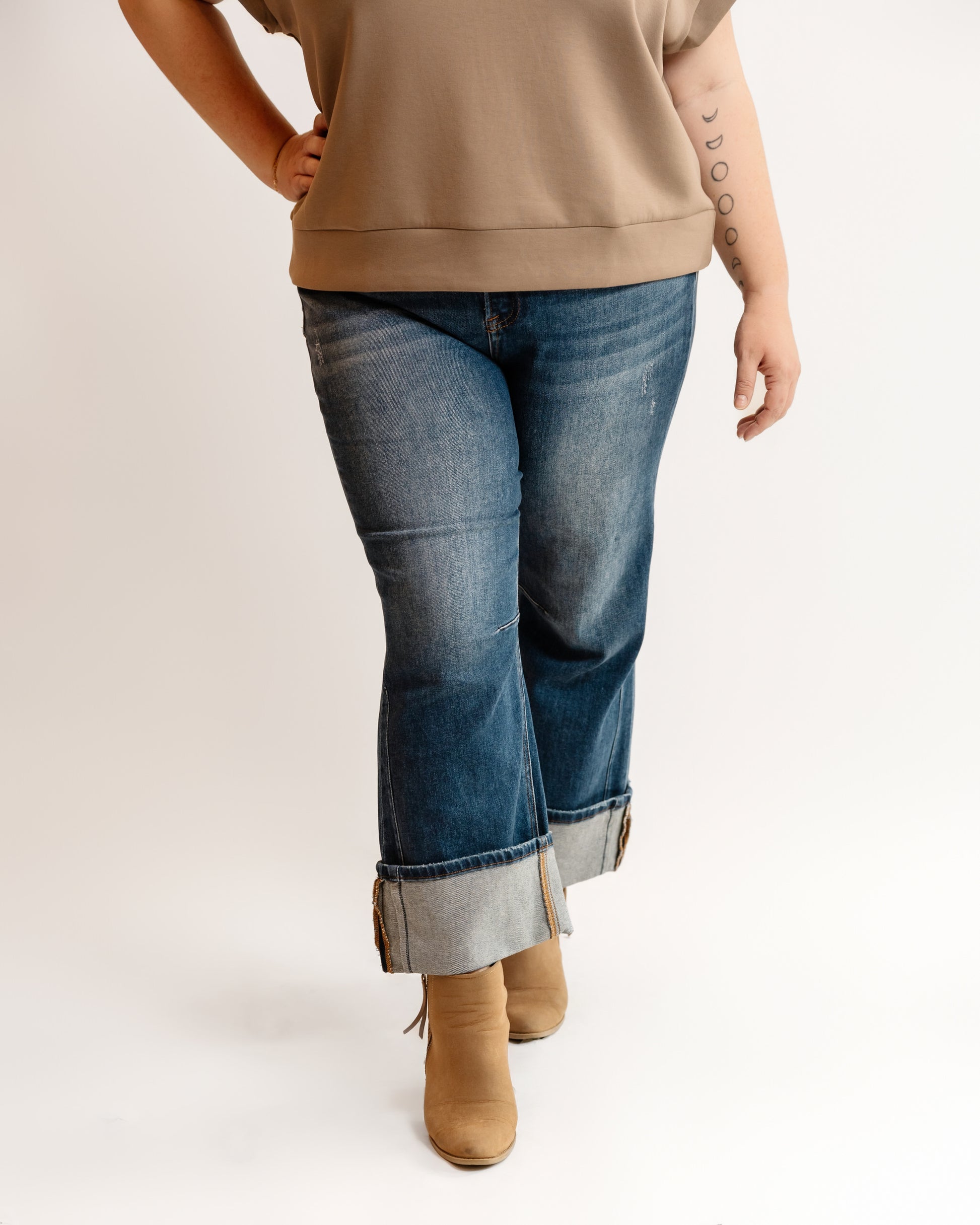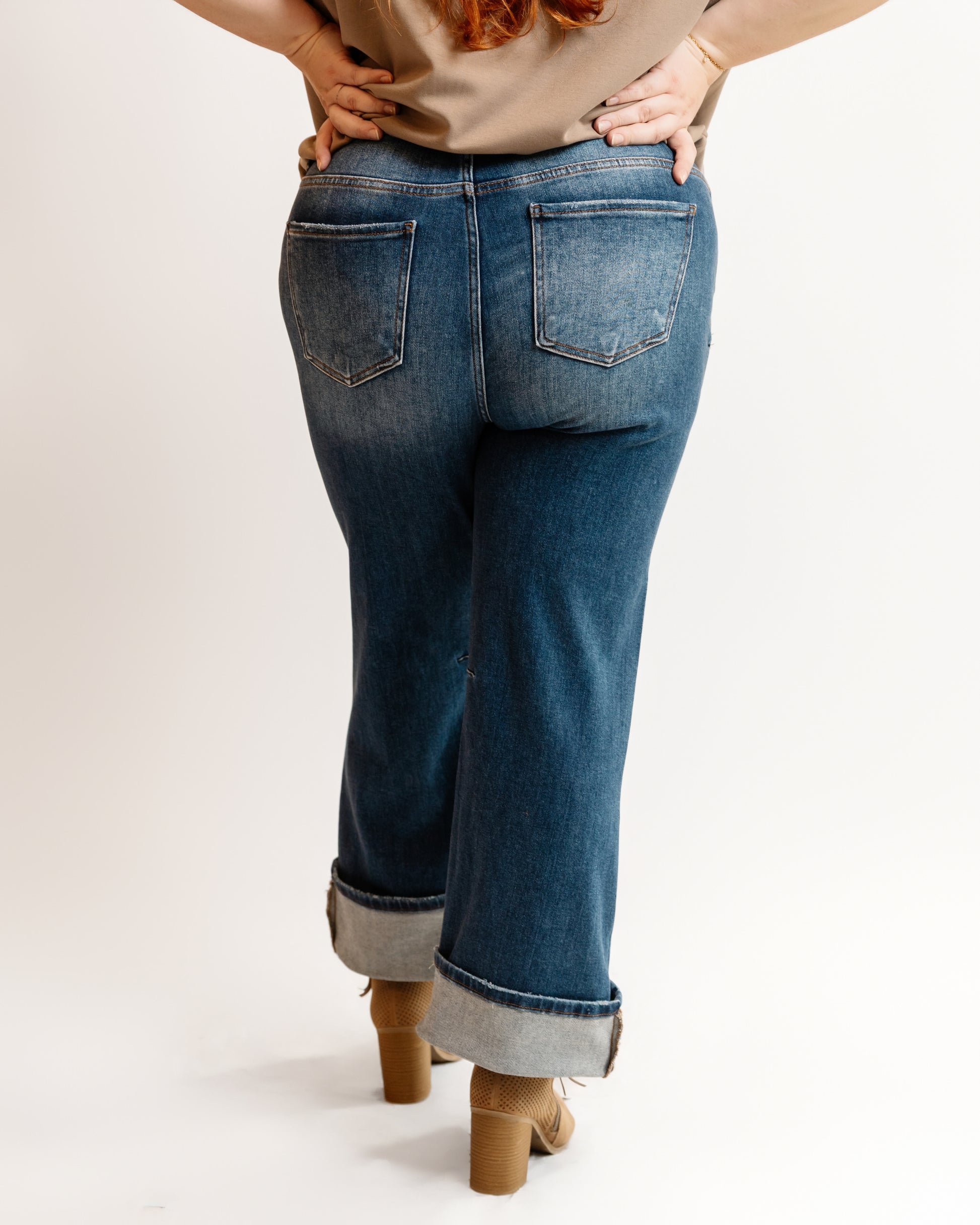The 27" HR Cuffed Straight Leg jeans by Risen offer a comfortable, relaxed fit with a flattering high-rise waist and straight leg design. Crafted in a dark wash with gentle distressing and subtle darting, these jeans provide both style and ease. Whether you wear them cuffed or uncuffed, they adapt effortlessly to your day, supporting you with versatile comfort and timeless appeal.