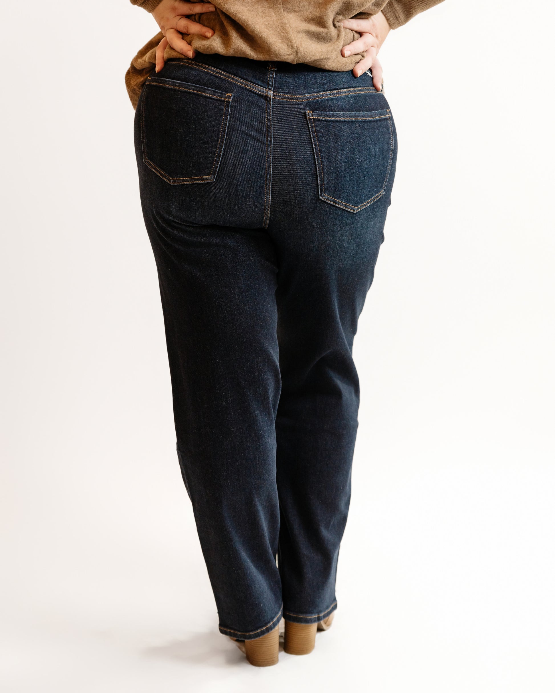 These 32" RFM High Rise Slim Wide Leg jeans combine comfort with modern style for the woman who wants both. The high-rise waist with built-in tummy control panels enhances your shape, while the subtle wide-leg silhouette adds a bold, fashionable touch. Featuring a 1-button closure and durable zipper, they guarantee a secure, all-day comfortable fit. The classic 5-pocket design offers practicality and versatility, perfect for effortlessly dressing up or down. Elevate your wardrobe with jeans that flatter and perform throughout your busy day.