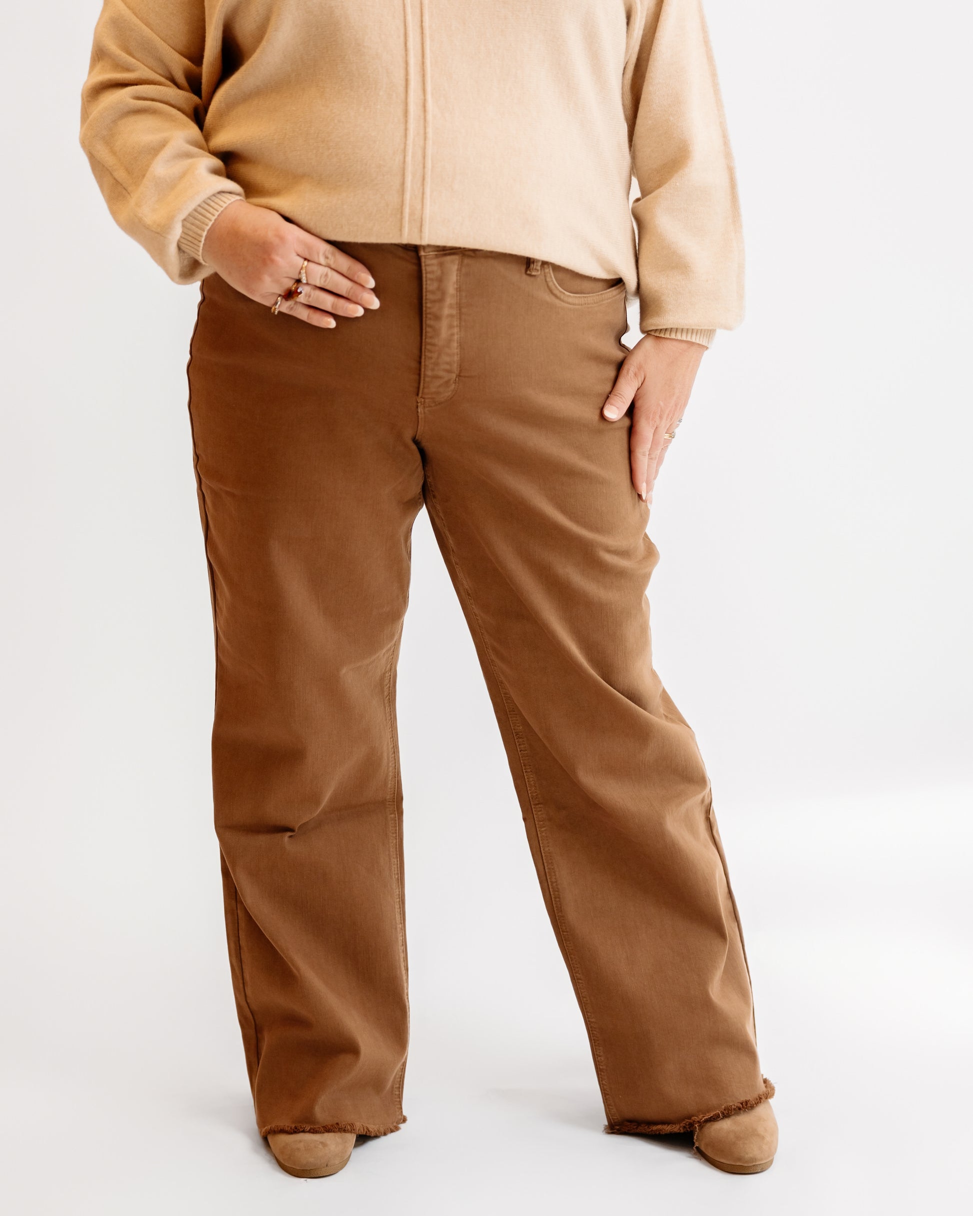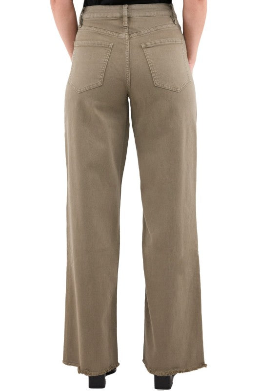 Elevate your denim game with this high-rise wide-leg essential. Featuring discreet tummy control panels, you'll enjoy a flattering silhouette that moves with you throughout the day. The subtle wide-leg cut offers modern comfort without sacrificing style, while the raw hem adds an effortlessly cool edge. Crafted from garment-dyed colored denim, each pair develops its own unique character over time, making it a timeless investment piece that works harder than ordinary jeans.