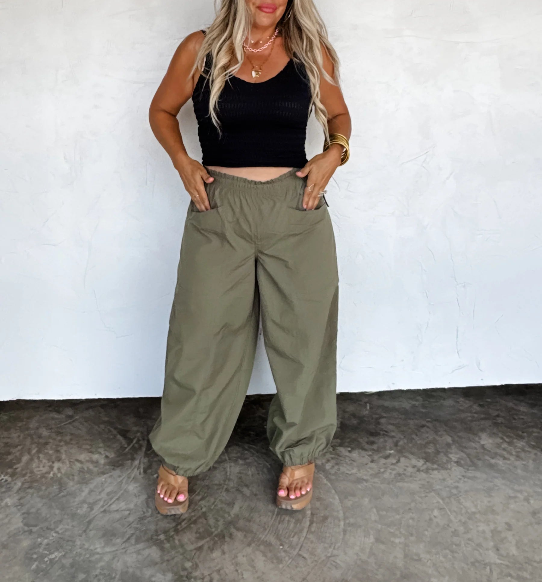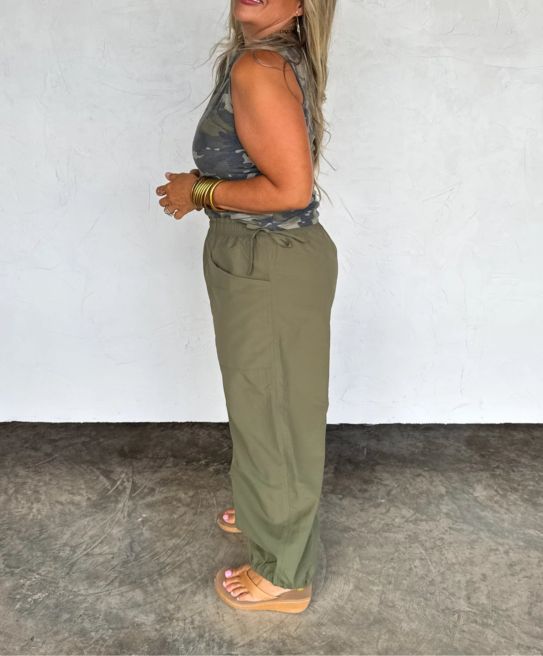 Experience effortless comfort with the Blaine Pants—your new go-to for any occasion. Featuring an elastic waistband with adorable adjustable side ties for a customized fit, these windbreaker-style pants move with you whether you're active or relaxing. Roomy pockets keep your essentials close, while the loose elastic ankle provides a relaxed silhouette. Designed for movement and versatility, the MVP Pants transition seamlessly from workout to weekend without compromising on style or comfort.