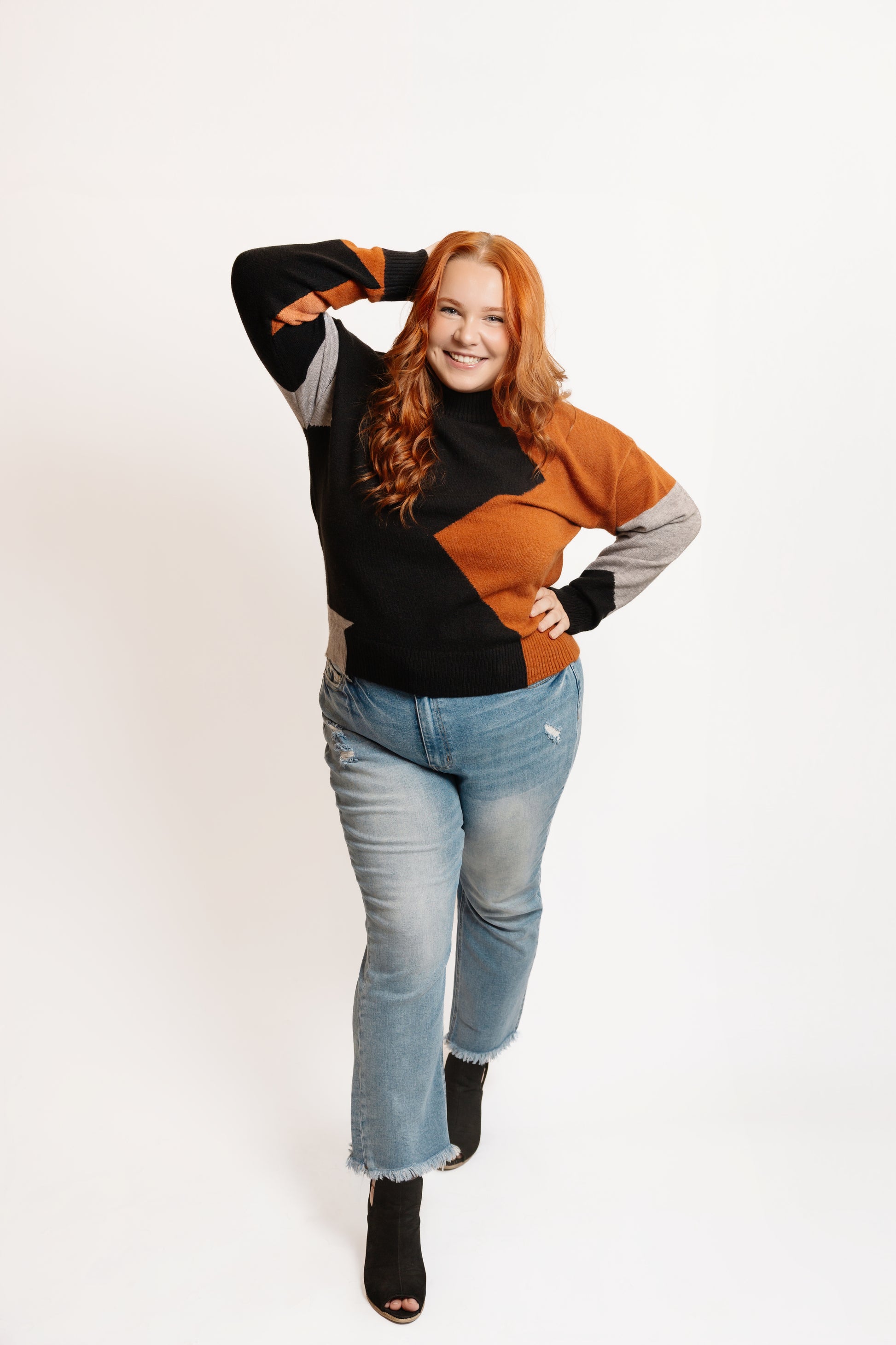 Cozy up in this playful colorblock sweater featuring banded sleeves and a chic mock neck. Its stretchy knit fabric offers a comfy, slightly oversized fit that moves with you. Plus, it’s non-sheer, so you can wear it confidently all day long. Perfect for adding a fun pop of color to your casual wardrobe!