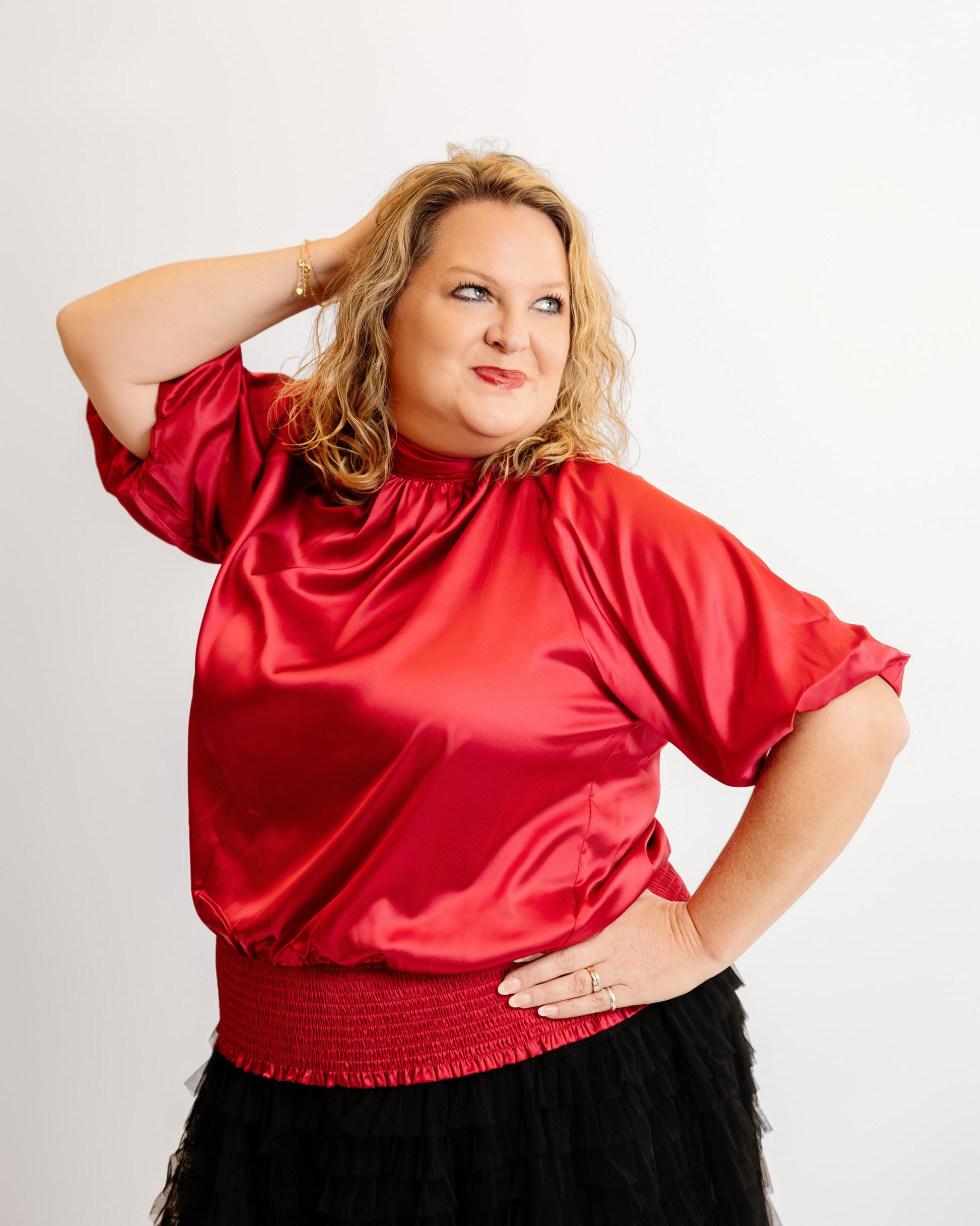 Elevate your wardrobe with this versatile Amara Satin Blouse, designed to transition seamlessly from special occasions to everyday elegance. The luxurious silky fabric catches the light beautifully, while the smocked waist creates a flattering, defined silhouette. A charming keyhole back detail and high neckline with tie closure add sophisticated flair, while voluminous puff sleeves bring contemporary style. Whether you're dressing up for an event or elevating your casual look, this shiny satin blouse delivers polished refinement with effortless grace.