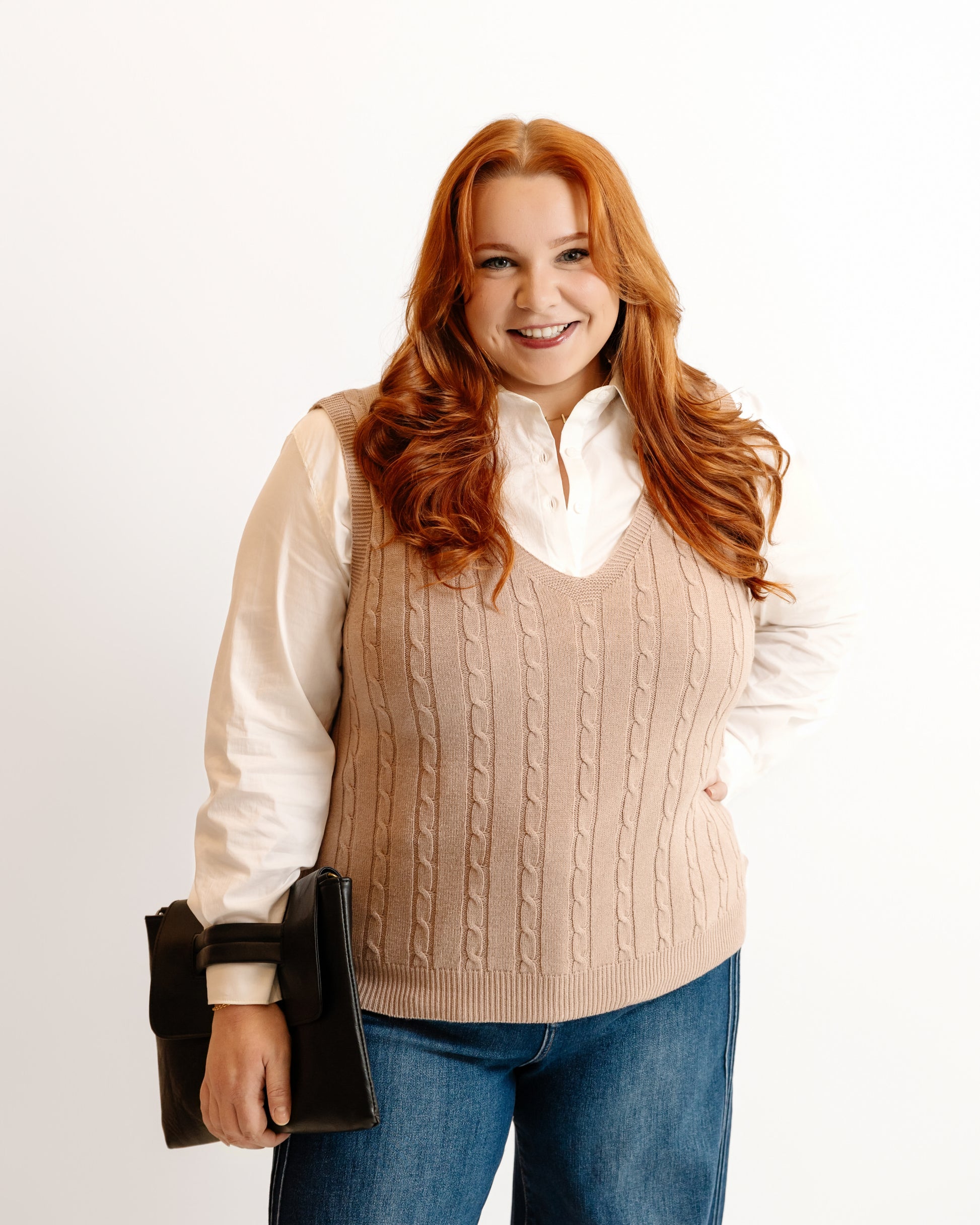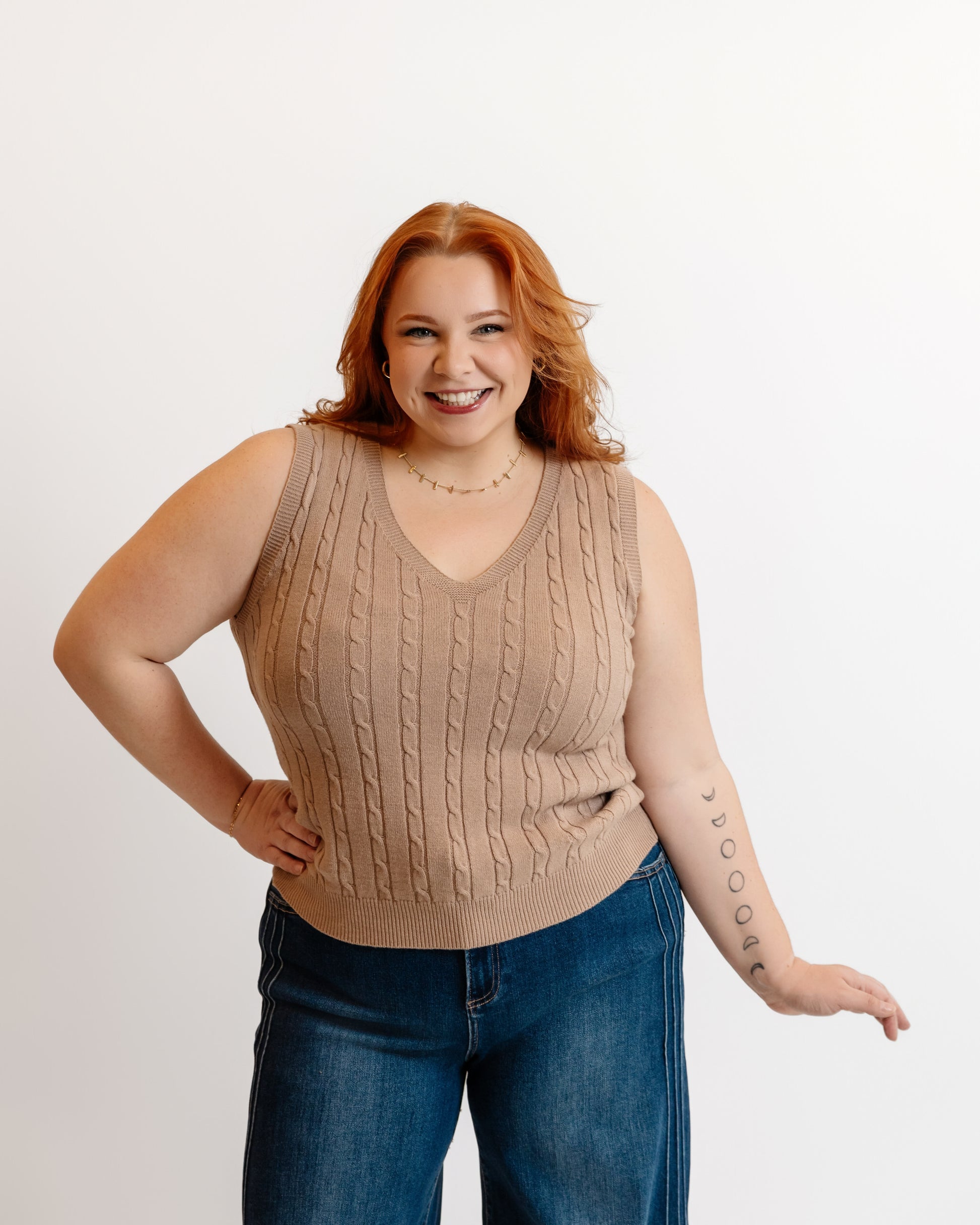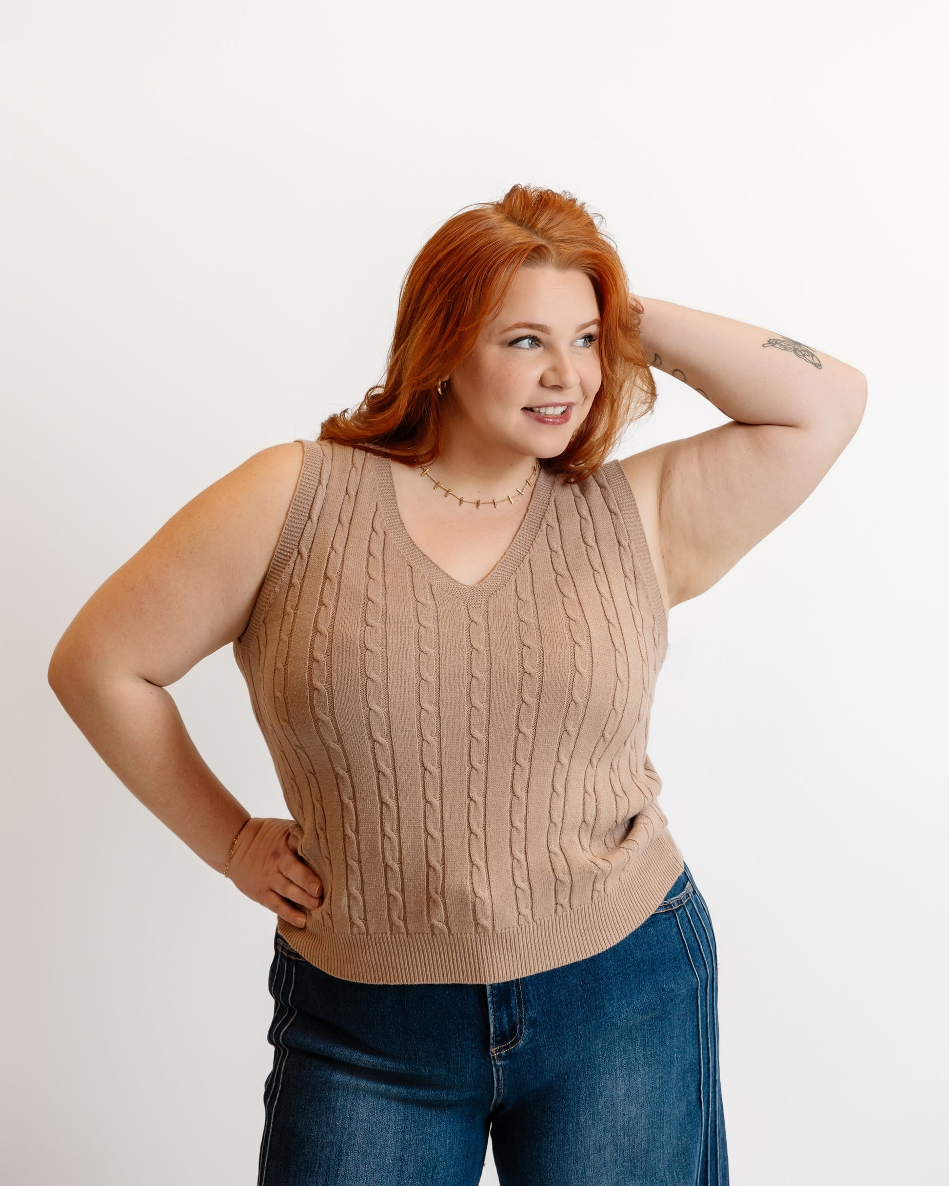 This classic cable knit sweater vest offers a timeless look with a V-neckline and sleeveless design, making it perfect for layering. Its solid color and ribbed trim hem provide a clean, polished finish, while the waist-length cut ensures versatile styling options. Comfortable and easy to wear, this vest adds warmth without bulk, making it an ideal addition to your wardrobe for both casual and dressier occasions.